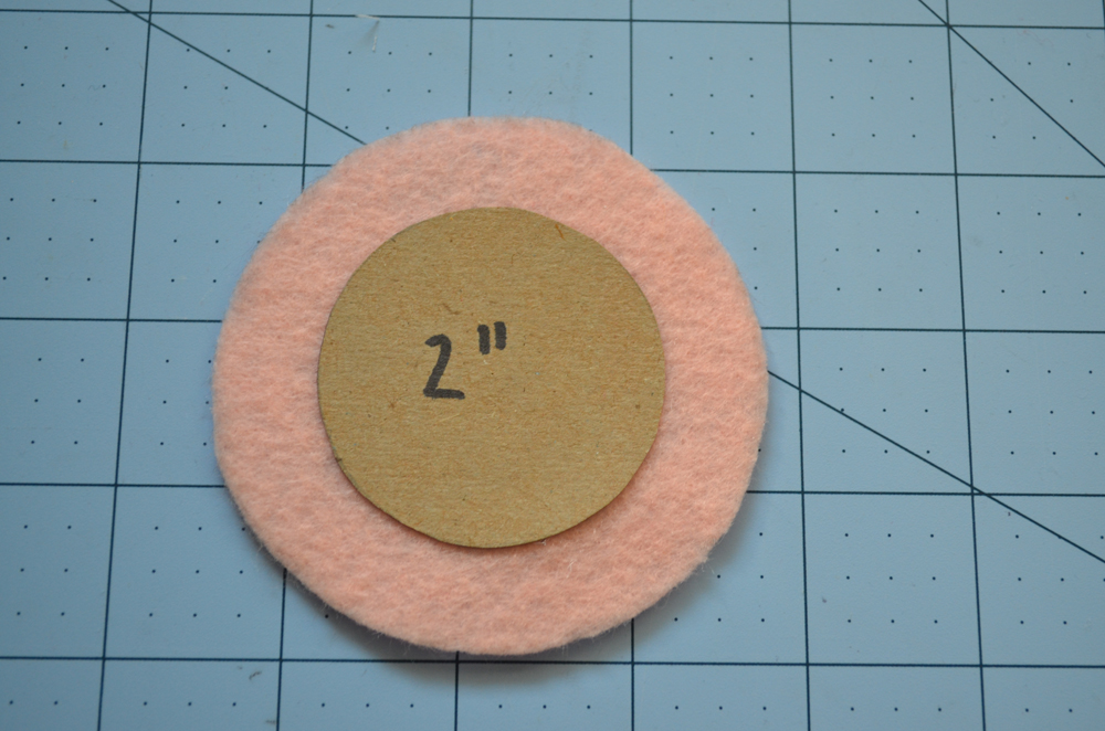 Glue the 2" cardboard you cut out earlier to the 3-1/4" piece of felt you cut out when you first started.